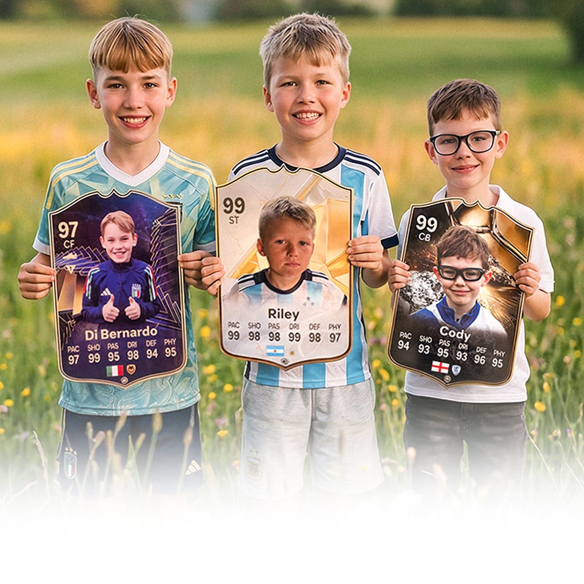 Customised real-life football cards, made with high quality materials