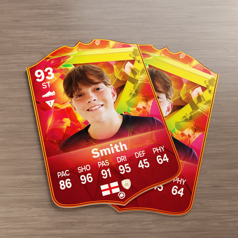 CardsPlug is home to the world’s favourite personalised football cards. Our easy football card builder lets you make a real life football card with your own name, photo, and skill ratings. With 100+ designs to choose from and some inspired by EA SPORTS FC 26 cards seen in EA FC 26, EA FC 25 and FC 24 as well as FIFA cards seen in games like FIFA 23 and FIFA 22.