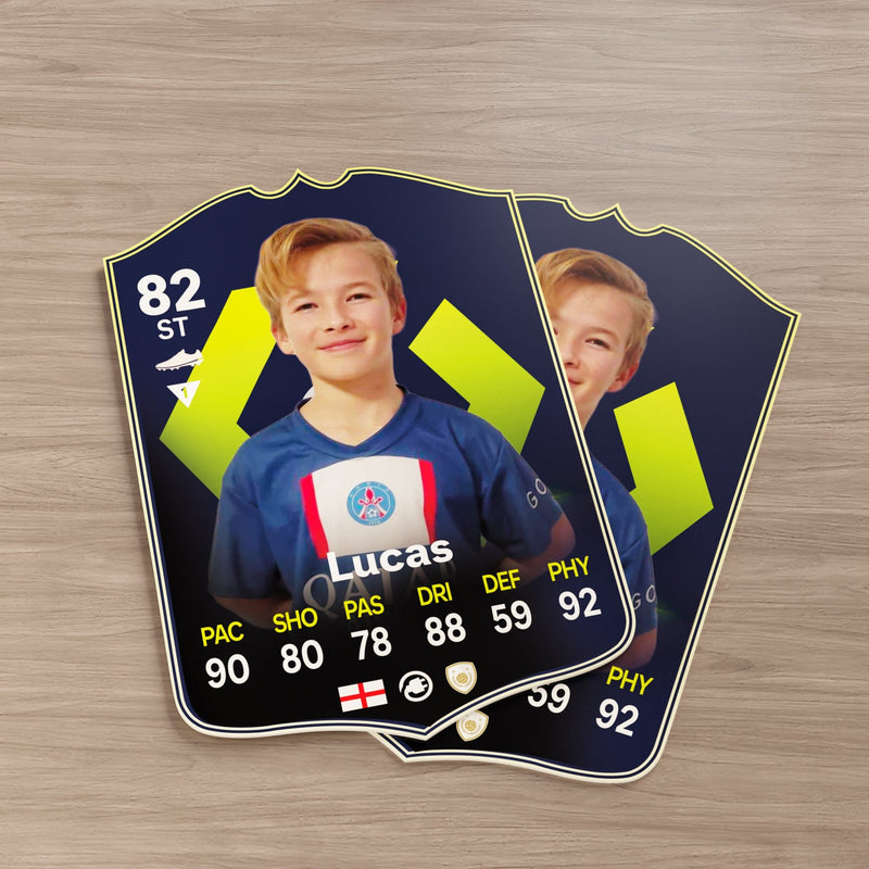 CardsPlug is home to the world’s favourite personalised football cards. Our easy football card builder lets you make a real life football card with your own name, photo, and skill ratings. With 100+ designs to choose from and some inspired by EA SPORTS FC 26 cards seen in EA FC 26, EA FC 25 and FC 24 as well as FIFA cards seen in games like FIFA 23 and FIFA 22.