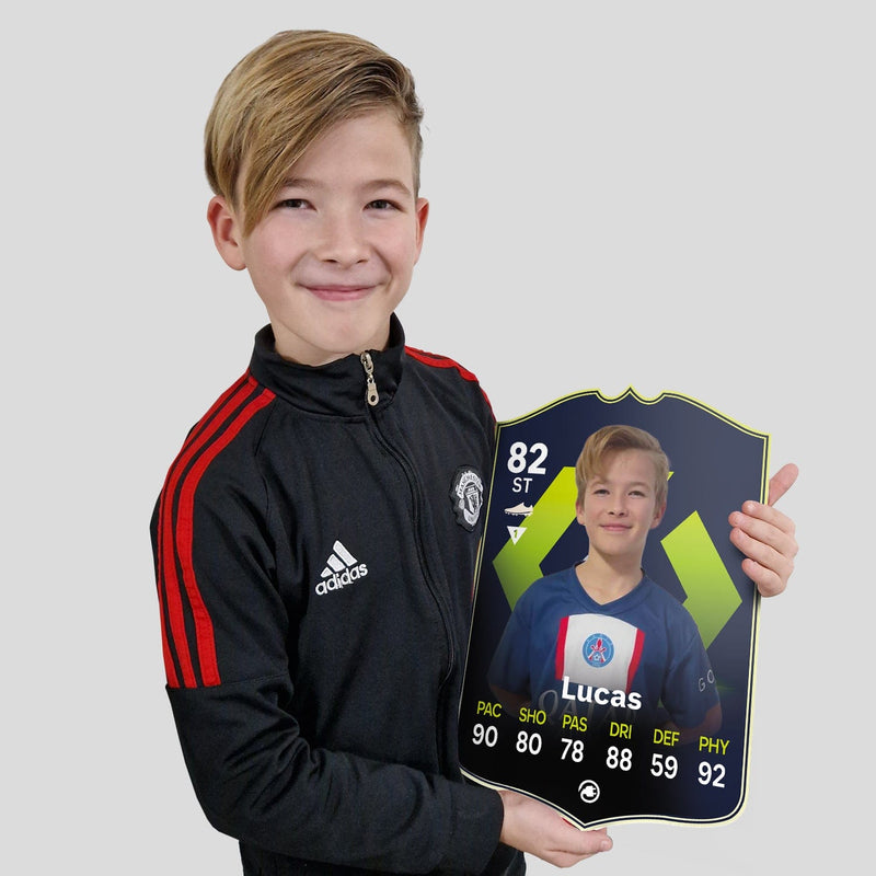 Yes! Our football card designers will remove the background from the photo you upload so it looks just like the football cards you might’ve seen games like EA FC 25, EA FC 24 or FIFA. We’ll also position the photo perfectly on the football card so it looks great. If there are any problems with the quality of your photo, we’ll reach out and let you know. Plus, our website's AI will remove the background on the image for visual purposes before purchase so you can see it without a background on the card.