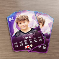 When it comes to personalising your card, the basic steps are to upload a photo and add a name to your card. Then you’ll add details like your player’s position and skill ratings out of 99 for each football skill shown on the card. Our online card builder makes this really easy. And if you aren’t a football card expert, don’t worry!
