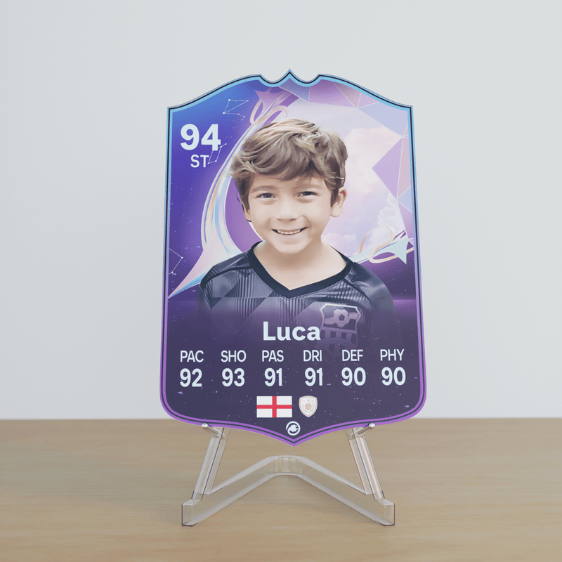 CardsPlug is home to the world’s favourite personalised football cards. Our easy football card builder lets you make a real life football card with your own name, photo, and skill ratings. With 100+ designs to choose from and some inspired by EA SPORTS FC 26 cards seen in EA FC 26, EA FC 25 and FC 24 as well as FIFA cards seen in games like FIFA 23 and FIFA 22.