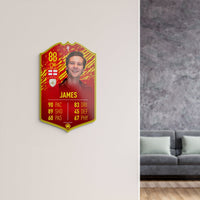 Our football card builder lets you choose between two different card materials. Our Standard cards are made of a ultra-strong variety of Foamex (not cardboard or foam!). This material has a lovely gloss finish and is also super durable. Our world-exclusive Metal football cards have a matte finish and are slightly heavier. Both look amazing and will last forever.