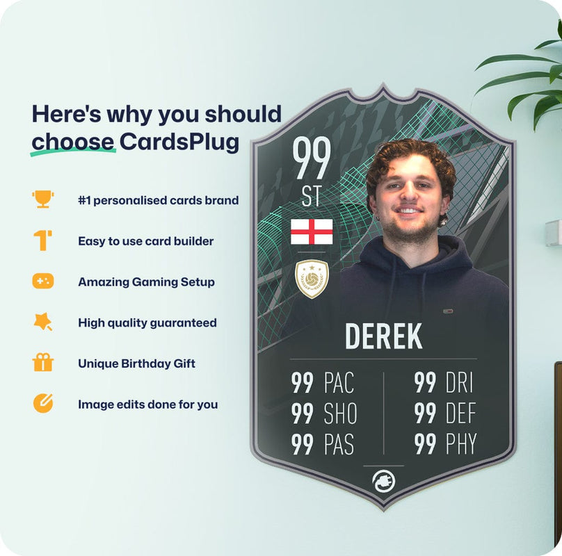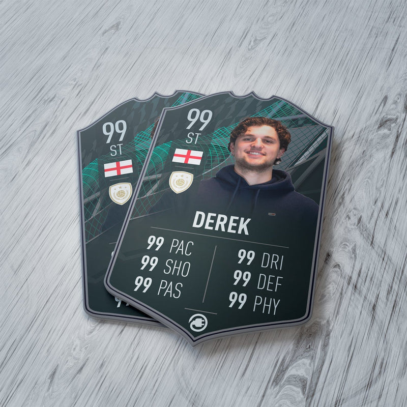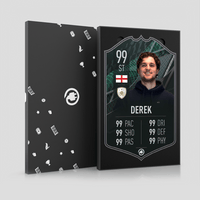 CardsPlug is home to the world’s favourite personalised football cards. Our easy football card builder lets you make a real life football card with your own name, photo, and skill ratings. With 100+ designs to choose from and some inspired by EA SPORTS FC 26 cards seen in EA FC 26, EA FC 25 and FC 24 as well as FIFA cards seen in games like FIFA 23 and FIFA 22.