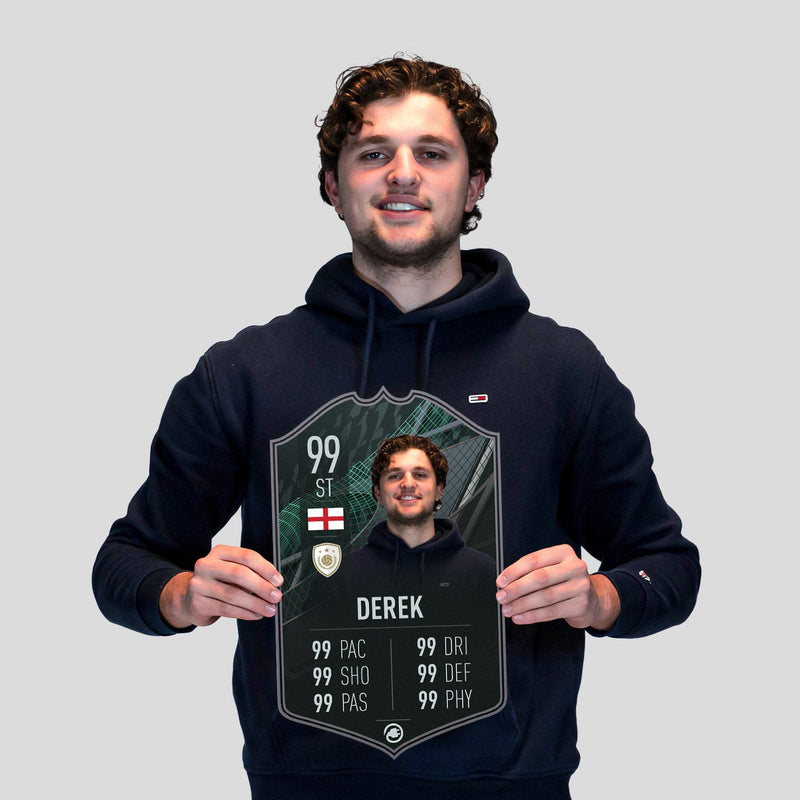 Yes! Our football card designers will remove the background from the photo you upload so it looks just like the football cards you might’ve seen games like EA FC 25, EA FC 24 or FIFA. We’ll also position the photo perfectly on the football card so it looks great. If there are any problems with the quality of your photo, we’ll reach out and let you know. Plus, our website's AI will remove the background on the image for visual purposes before purchase so you can see it without a background on the card.